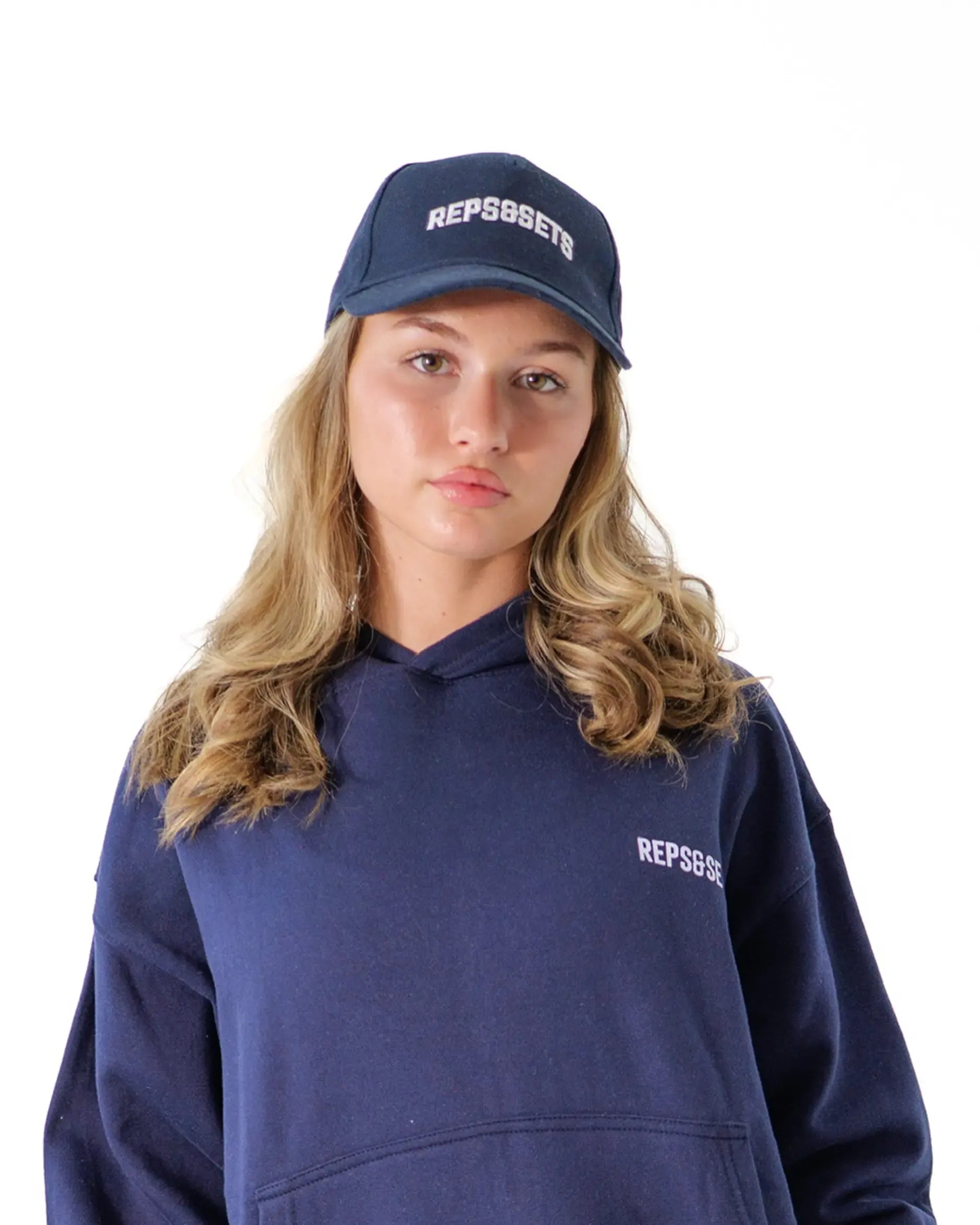 A structured cotton cap with a curved peak and adjustable fit. Finished with embroidered REPS&SETS branding for a clean, athletic finish.